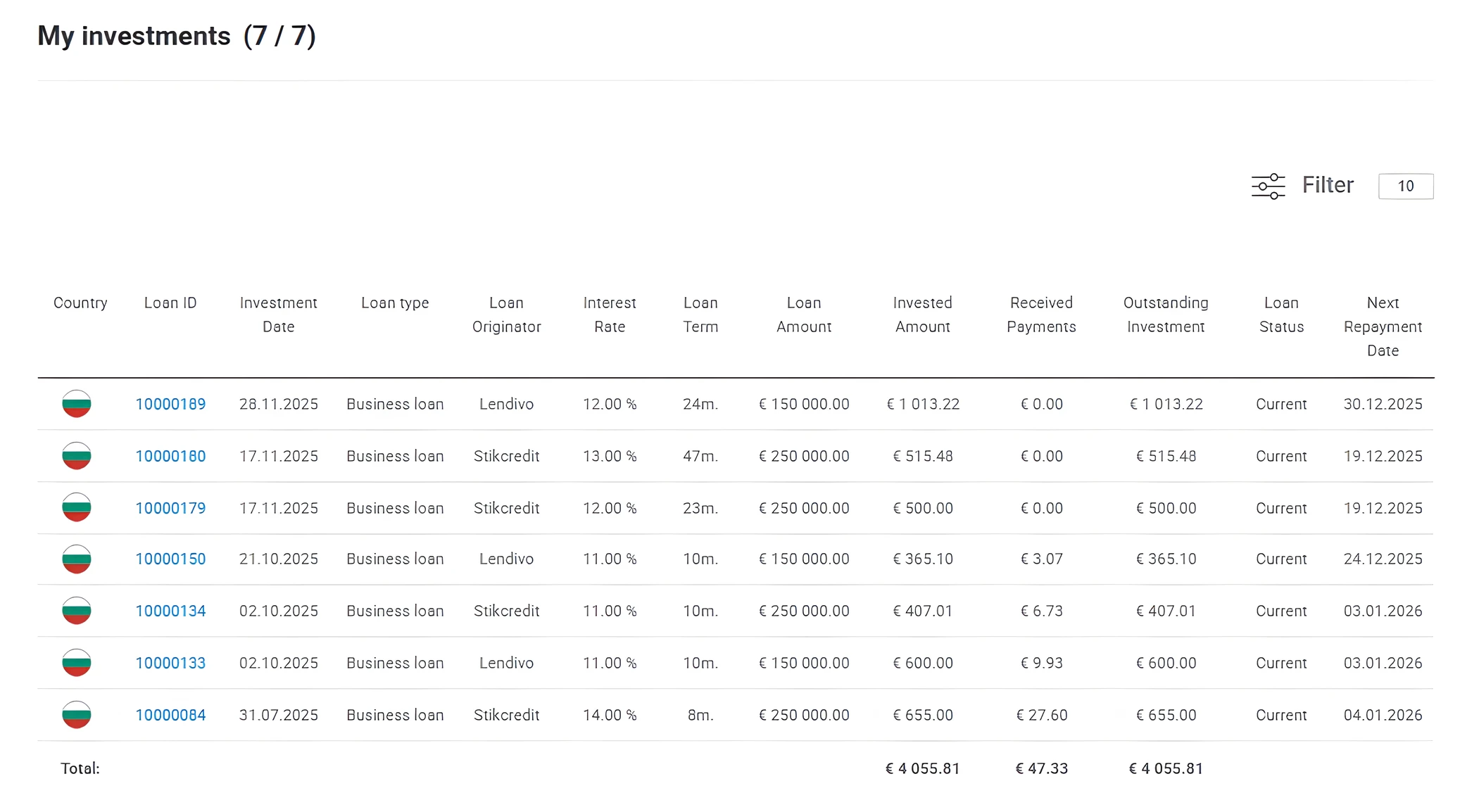 - Autoridad supervisora: La plataforma está autorizada y supervisada por la Comisión de Supervisión Financiera de Bulgaria, lo que garantiza cumplimiento normativo en toda la Unión Europea así como protección al inversor y total transparencia.