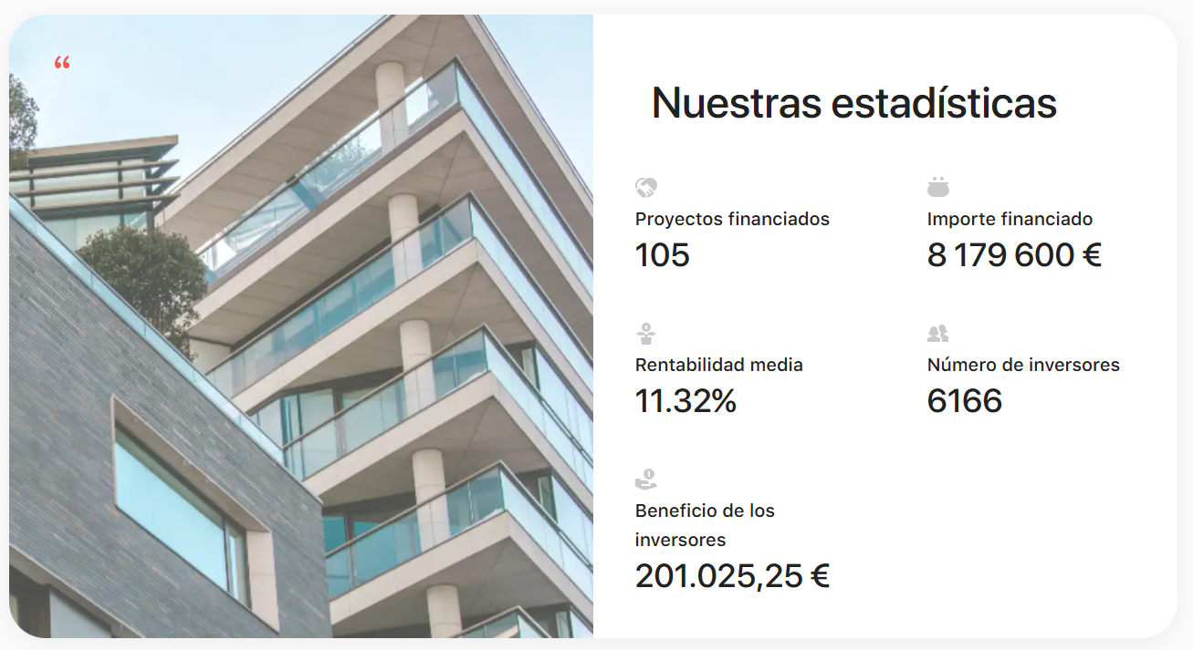 Facilitamos el beneficio mutuo entre inversores y empresas. Apoyamos a los desarrolladores inmobiliarios y a las pymes a conseguir el financiamiento que necesitan para crecer de forma más eficaz y a los inversores a obtener rentabilidad de la inversión en préstamos con garantía hipotecaria. Seleccionamos rigurosamente todos los proyectos que se presentan en la plataforma para asegurar inversiones de bajo riesgo para nuestros inversores.