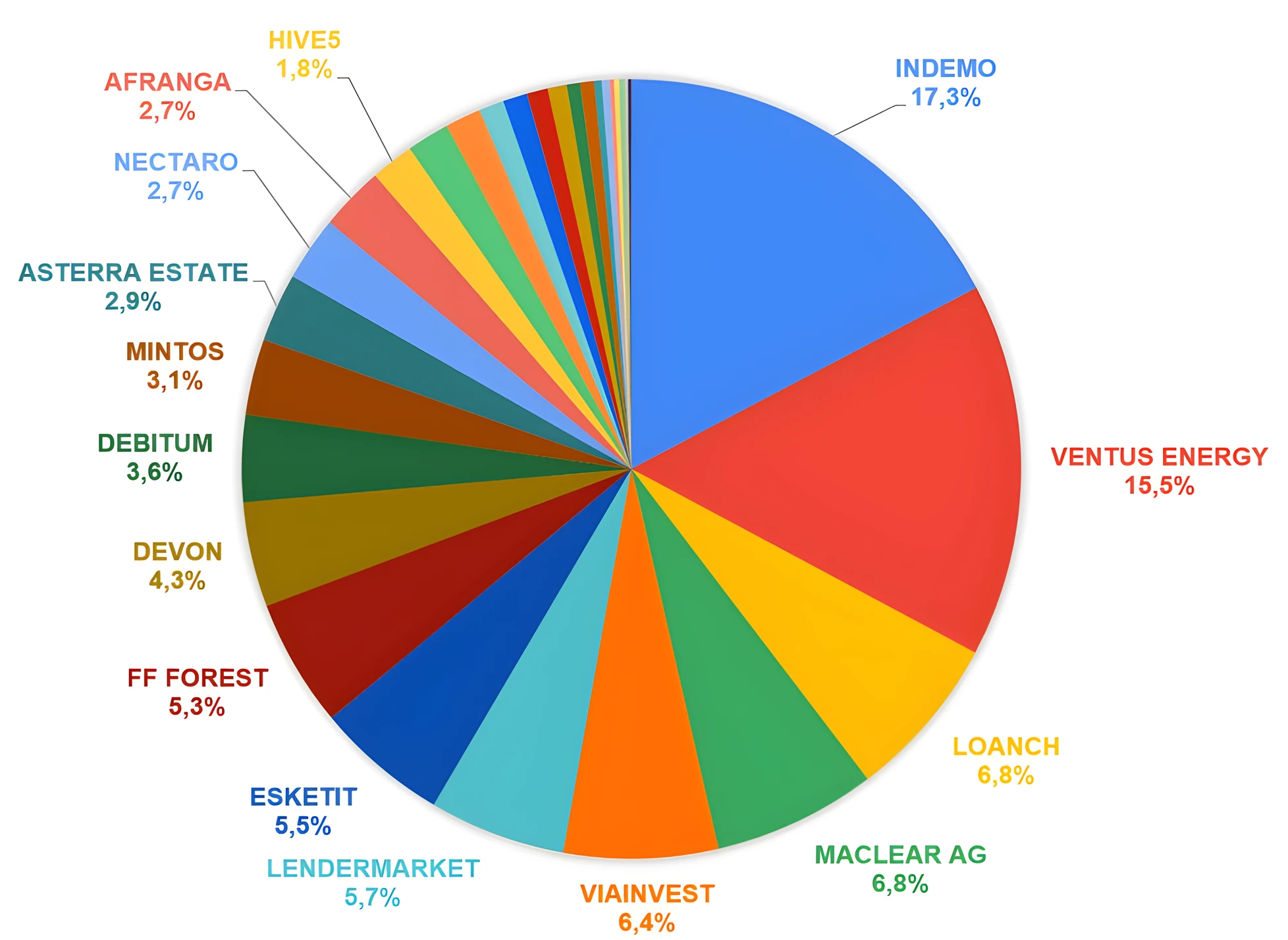 A continuación os dejo la distribución de mi cartera de Inversión en Crowdlending durante el mes de Diciembre de este 2025
