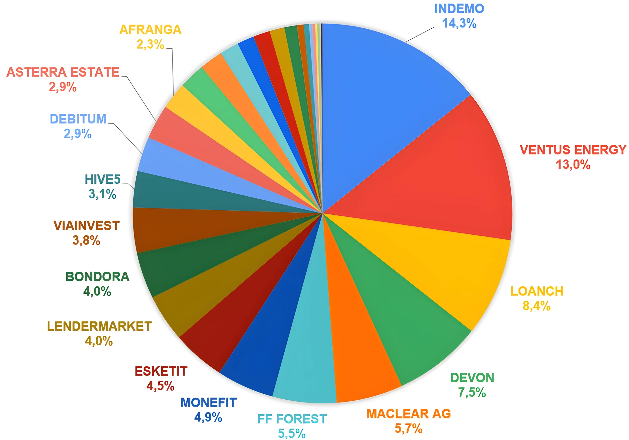 A continuación os dejo la distribución de mi cartera de Inversión en Crowdlending durante el mes de febrero de este 2026